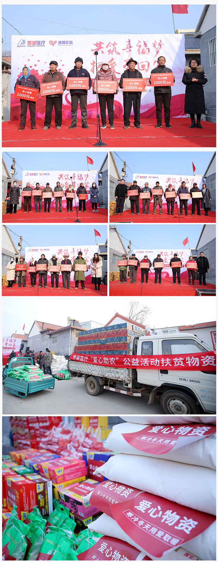 12月18日,普愛(ài)醫(yī)療攜手會(huì)員俱樂(lè)部成員在山東省萊州市柞村鎮(zhèn)大臺(tái)頭村舉辦“共筑幸福夢(mèng),把愛(ài)帶回家”社會(huì)公益助農(nóng)活動(dòng),為當(dāng)?shù)?0戶貧困家庭捐贈(zèng)生活物資,用善舉傳遞愛(ài)心,讓溫暖在寒冬延續(xù)。普愛(ài)醫(yī)療副總經(jīng)理趙政文先生、會(huì)員俱樂(lè)部成員代表、柞村鎮(zhèn)大臺(tái)頭村村委書(shū)記王京成先生出席了本次活動(dòng)。萊州市電視臺(tái)及萊州日?qǐng)?bào)等媒體對(duì)本次“愛(ài)心助農(nóng)”公益活動(dòng)進(jìn)行了現(xiàn)場(chǎng)采訪報(bào)道。