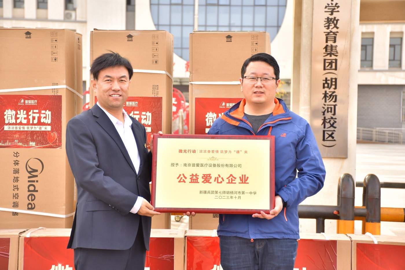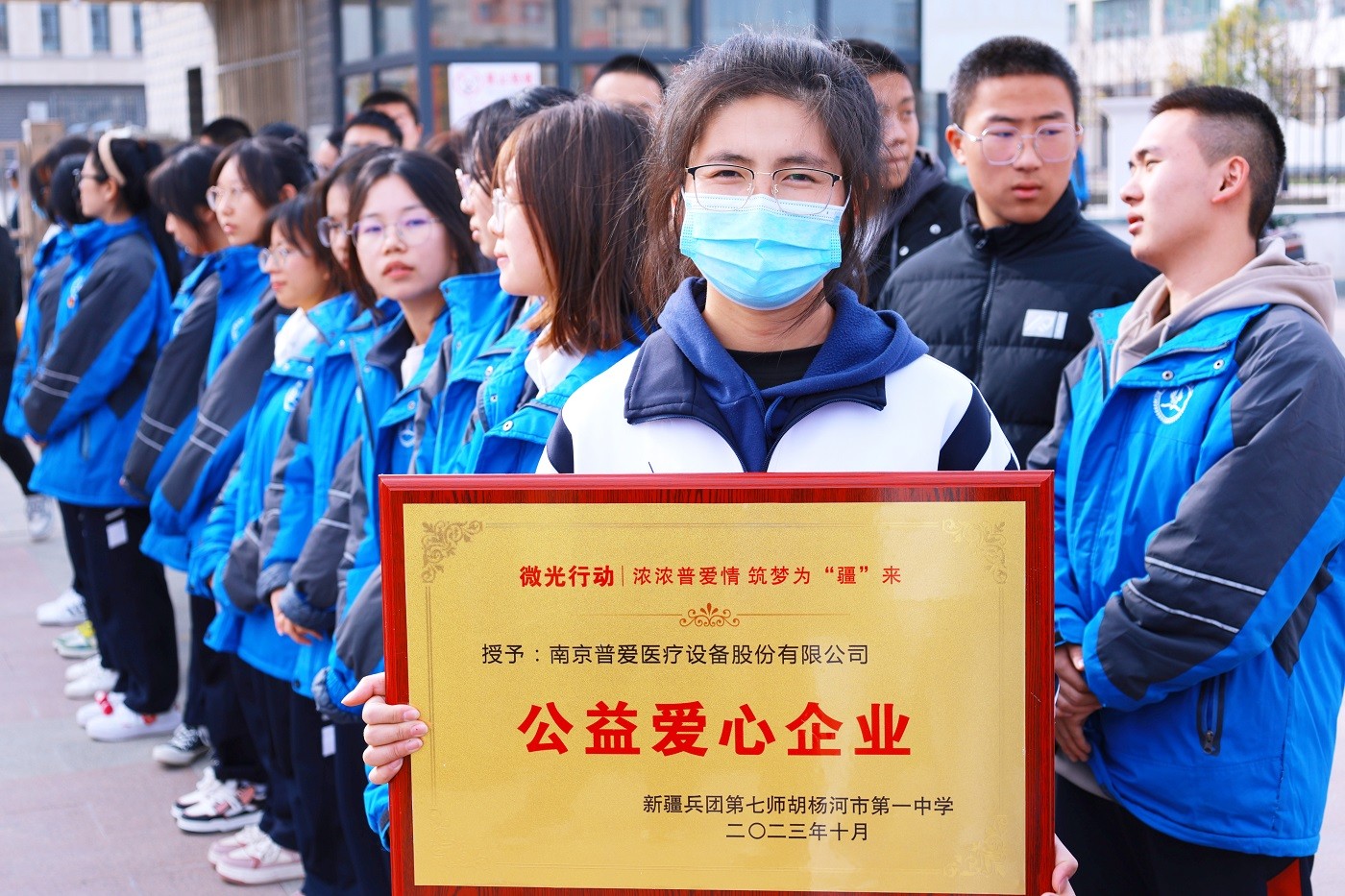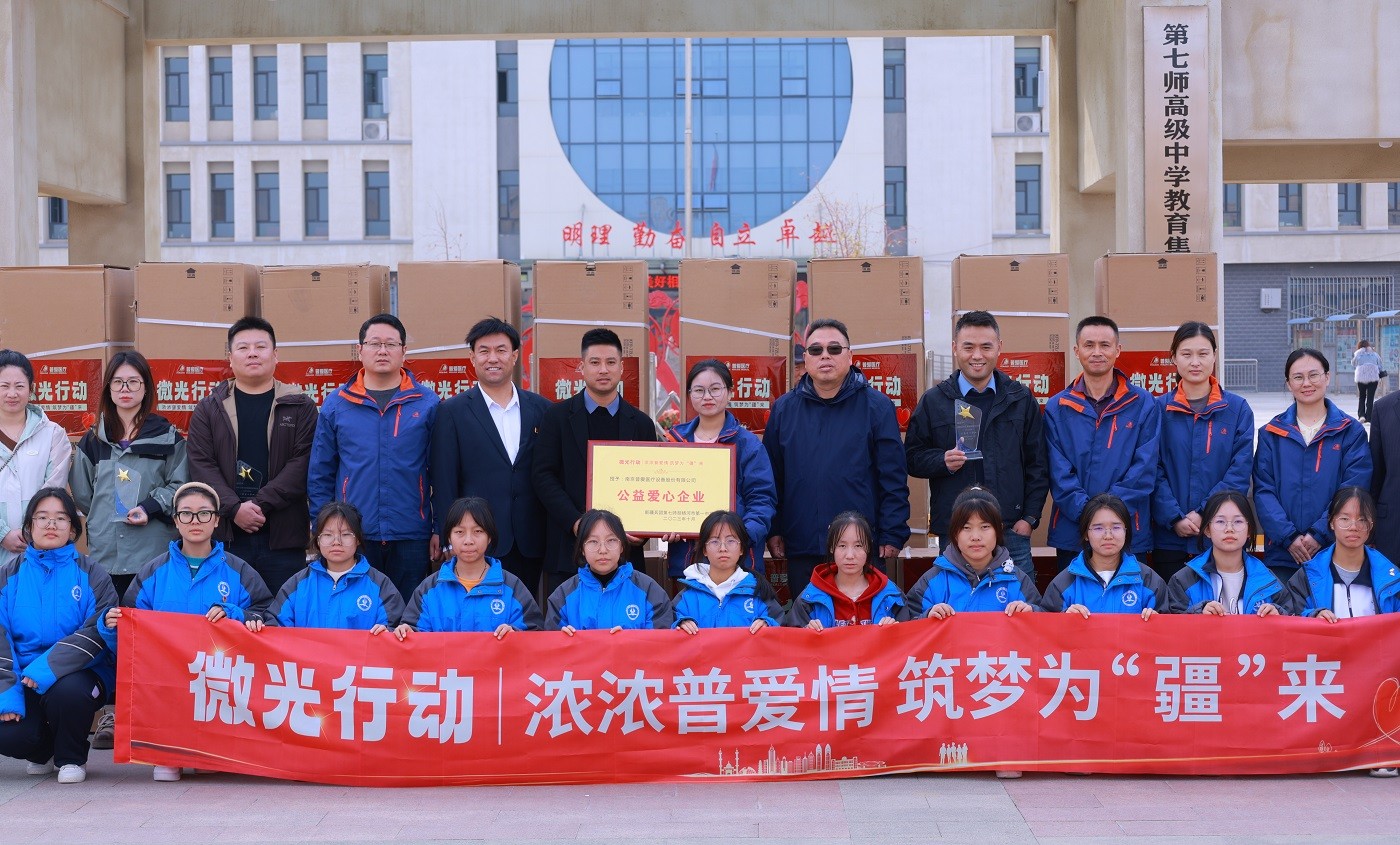 10月23日,由普愛醫(yī)療員工代表和會員俱樂部客戶代表組成的“微光行動”公益小組來到新疆胡楊河市第一中學(xué)開展助學(xué)捐贈活動。